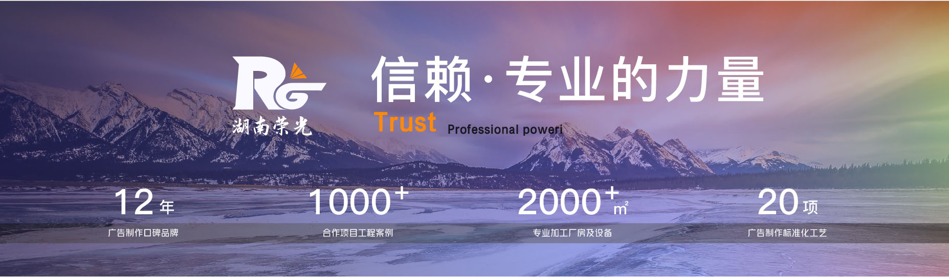 走進(jìn)湖南榮光About Us湖南榮光公司是一家總部位于長沙的廣告公司,公司現(xiàn)有管理團(tuán)隊(duì)技術(shù)骨干20余人,擁有專業(yè)的安裝隊(duì)伍及售前售后團(tuán)隊(duì)、資深的文化墻設(shè)計(jì)、黨建文化設(shè)計(jì)和廣告標(biāo)識設(shè)計(jì)團(tuán)隊(duì)。現(xiàn)有廣告標(biāo)識及發(fā)光字加工生產(chǎn)廠房2200平米,150平米標(biāo)準(zhǔn)化烤漆加工房。全自動發(fā)光字折彎機(jī)、雕刻機(jī)、激光切割機(jī)、平板UV設(shè)備等十余臺。同時(shí)具有強(qiáng)大的LED顯示屏供應(yīng)鏈、為您企業(yè)的廣告投入,實(shí)現(xiàn)創(chuàng)新和快速反應(yīng),提供了有力保障。